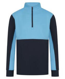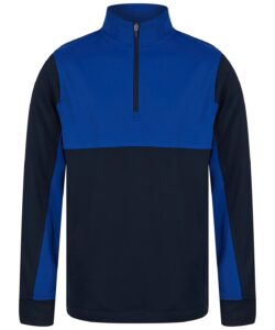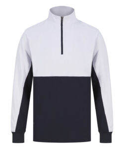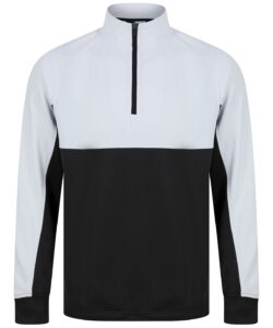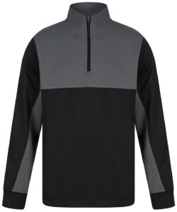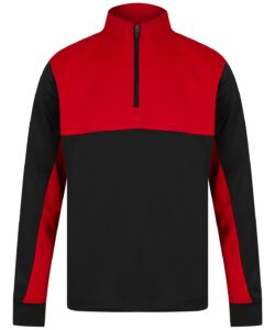 Contrasterende panden op de borst en onder de armen. Kwartrits. Zijpanelen. Omgekeerde nylon ritssluiting middenvoor en zijzakken. 1×1 geribde manchetten. Semi-automatische ritssluiting en trekker. BSCI gecertificeerd.